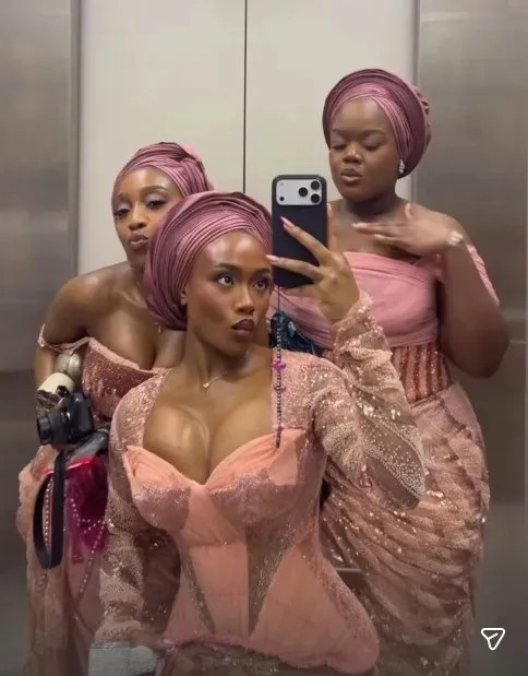 这位阿森纳球星的女友在Instagram快拍中分享了多段婚礼当天的视频,庆祝这一美妙时刻。其中一张照片里,她与另外两位宾客在电梯里自拍合影,三人均身着惊艳的粉色礼服。
