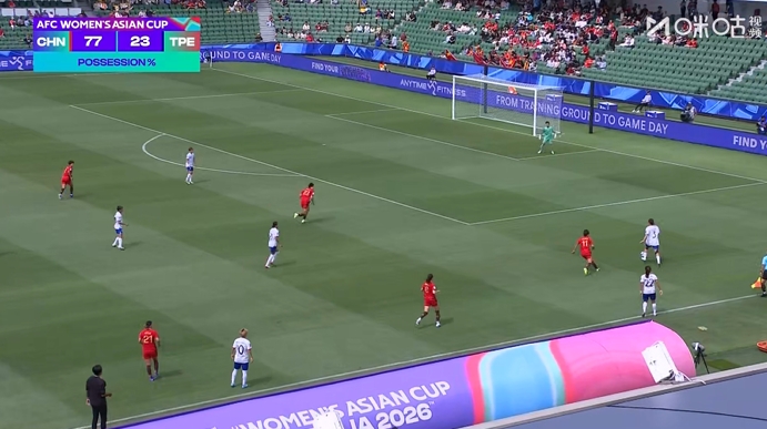 - 14日 23分钟过后中国女足控球率77%,中国台北女足23%