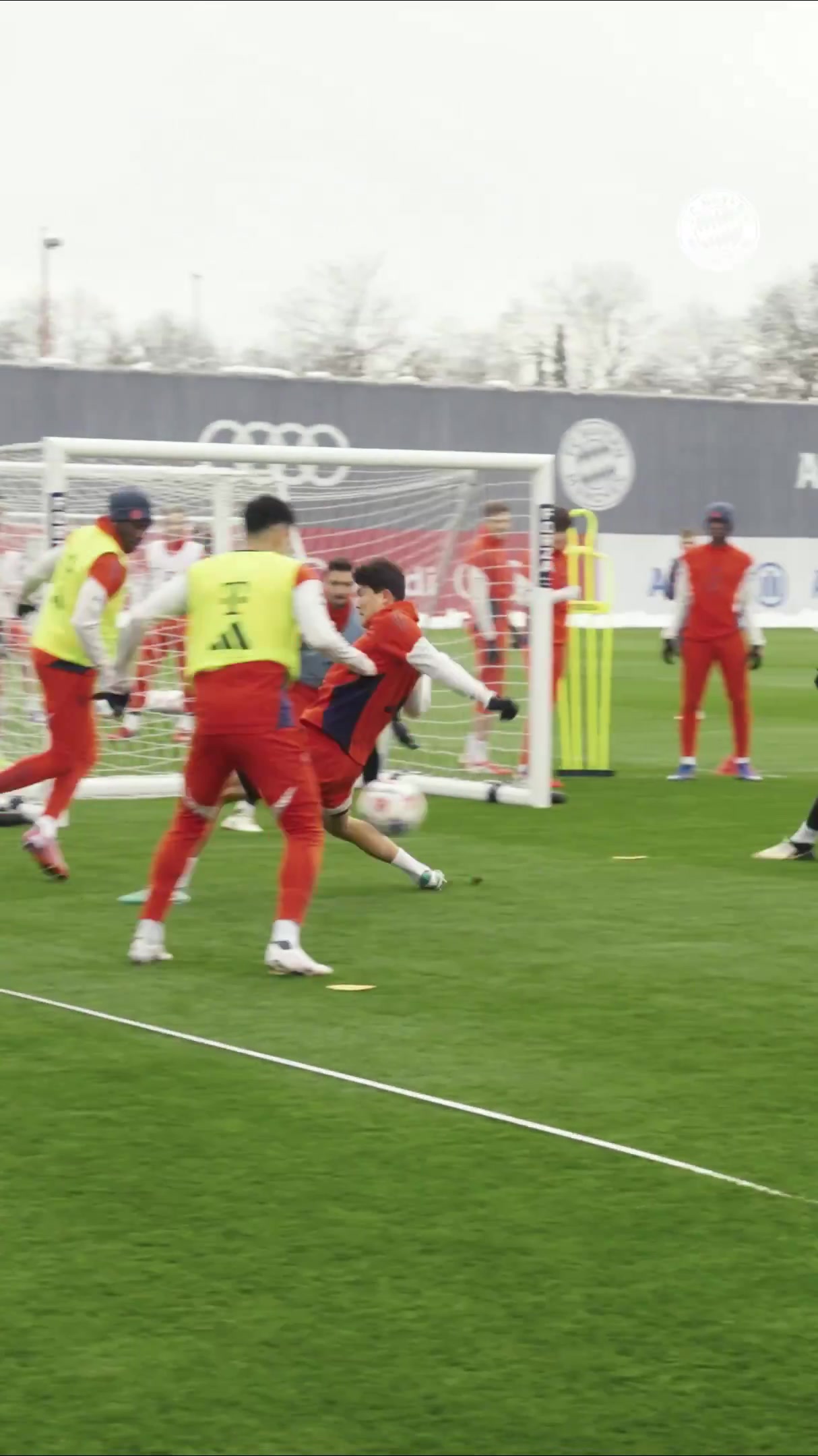拜仁官方社媒晒抢圈训练视频,球员们流畅一脚出球+迪亚斯破门