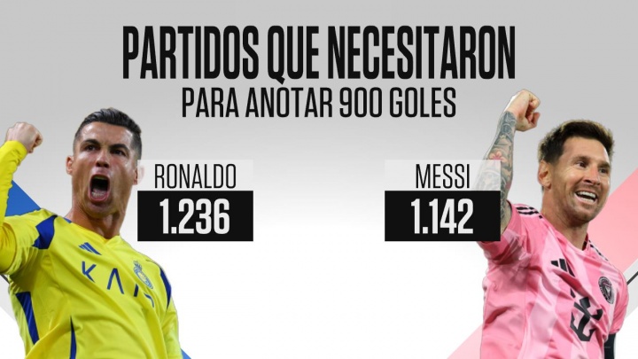 ESPN晒统计图,梅西1142场解锁900球,C罗1236场解锁900球。梅西比C罗少用94场达成。