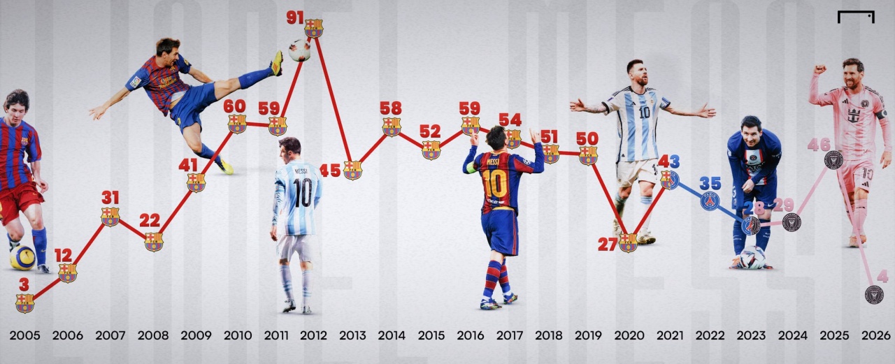 一图看梅西2005至今每年进球数:91球震古烁今!第1000球会在哪?