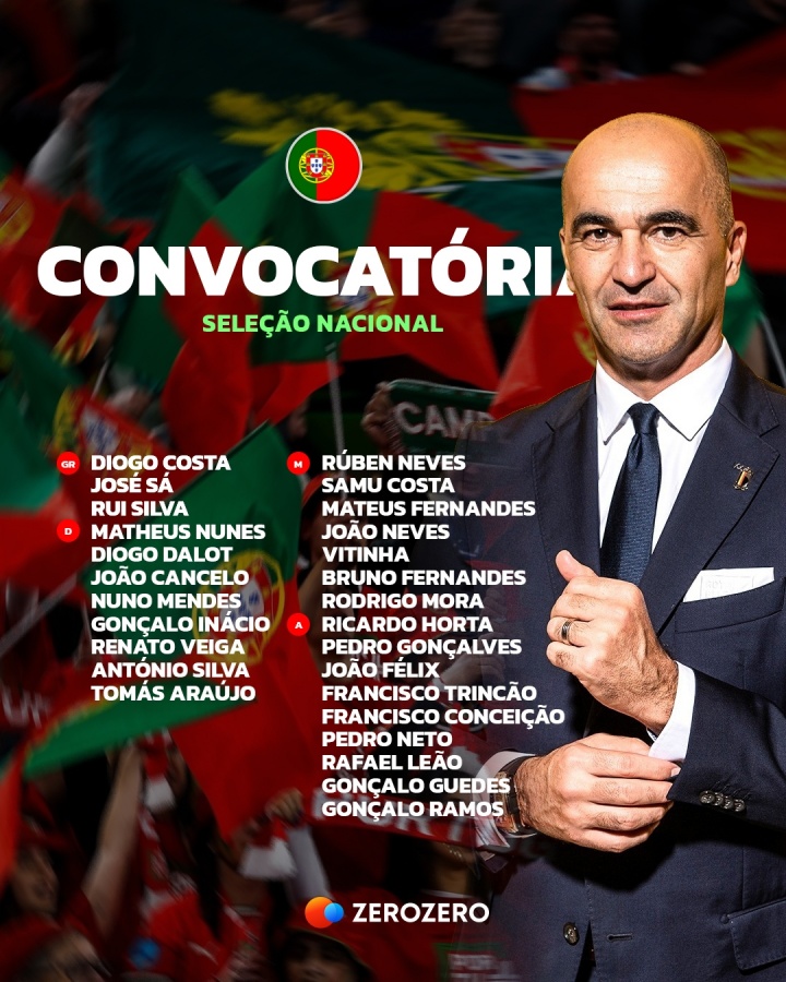 【相关新闻】葡萄牙大名单:C罗伤缺,B费、维蒂尼亚领衔,菲利克斯、莱奥入选