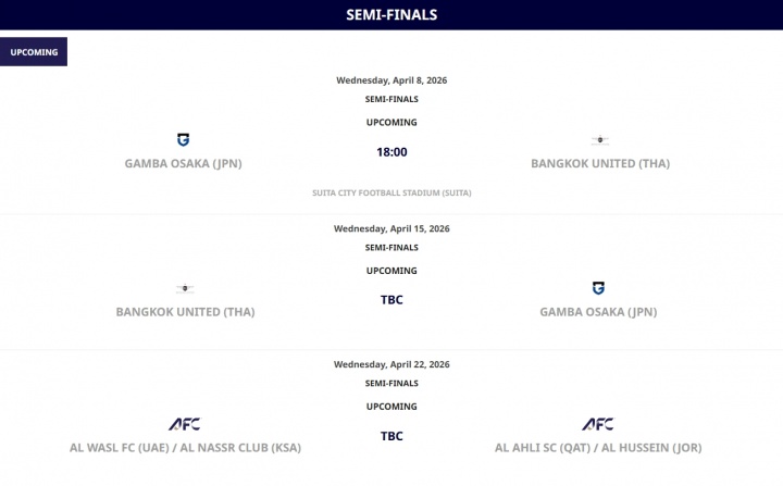 目前,亚足联官网更新了西亚区亚冠二级联赛的对阵,西亚区1/4决赛和半决赛改为单场制,东亚区仍为两回合制。