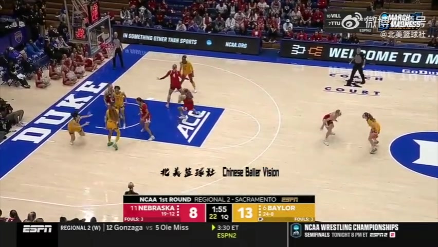 NCAA女篮锦标赛(疯狂三月)首轮,贝勒大学67-62击败内布拉斯加大学,晋级第二轮