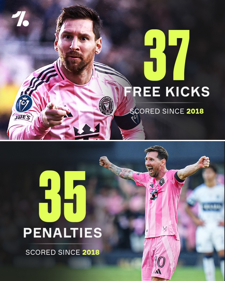 据统计,梅西自2018年以来,打进了37记任意球进球,同期点球进球数只有35球。