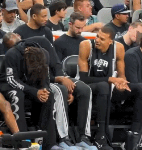 ??嘛呢班子?文班昨日替补席和卡斯尔玩闹 搞怪模仿小狗吐舌