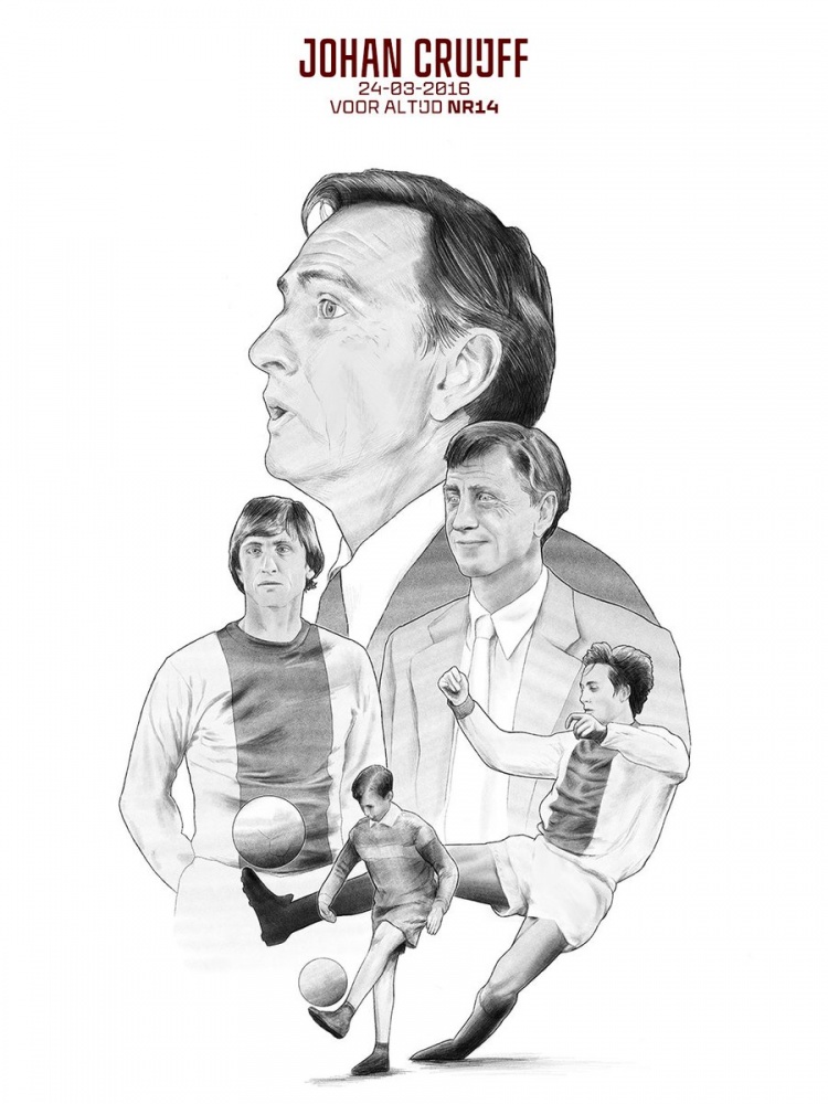 阿贾克斯社媒晒出纪念克鲁伊夫的海报,配文:“永远的克鲁伊夫。”