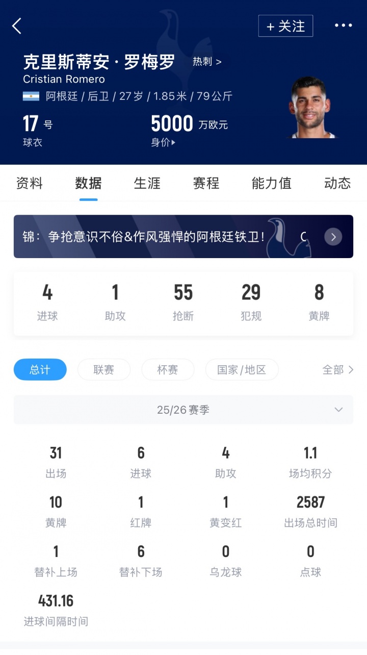 报道称,马竞去年夏天曾试图引进罗梅罗,但未能成功。罗梅罗也在去年8月与热刺续约至2029年。但热刺本赛季战绩糟糕,球员未来再次产生疑问。