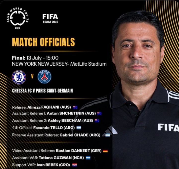 48岁的法加尼是前伊朗名哨,2019年移民澳大利亚,现执法澳超、沙特联、亚冠精英联赛、世预赛等赛事,2025年他曾主哨世俱杯决赛切尔西3-0巴黎。