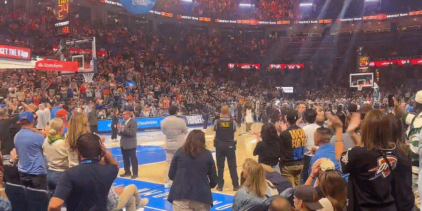 比赛间歇时段,一名观众在中圈扔进一球,直接赢下2万美金大奖,这也是本赛季首位在雷霆主场成功完成中场投篮挑战的球迷。这名球迷在挑战前就曾表示,如果自己投进了,就会买下亚历山大的全新迷彩配色的战靴。