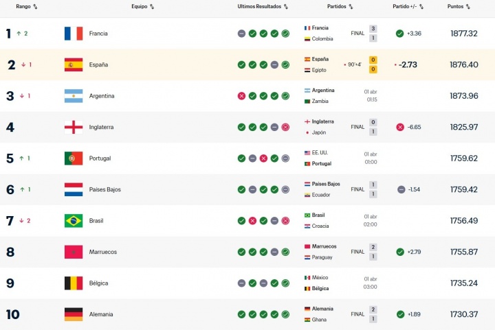 零点吧足球4月1日讯 法国队在3月份国际比赛日中击败巴西、哥伦比亚,登顶FIFA国家队排名。
