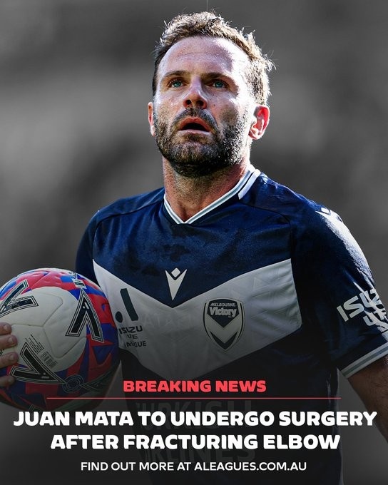 俱乐部声明写道:“胡安·马塔将在今天接受手术,治疗左肘骨折。这一伤势是他在上周末对阵惠灵顿凤凰的澳超联赛上半场中遭遇的。”