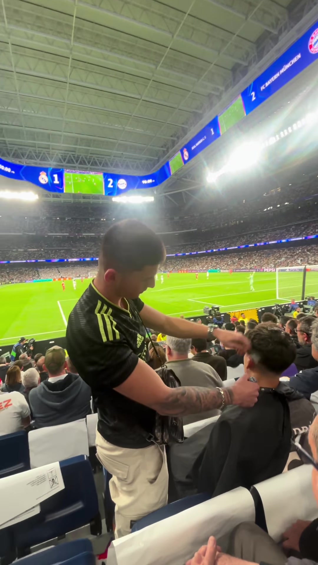 科贝:皇马vs拜仁赛中一网红在伯纳乌看台理发,引发皇马球迷不满