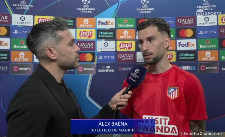 零点吧足球4月9日讯 欧冠1/4决赛首回合,马竞客场2比0击败巴萨。赛后,马竞前锋巴埃纳接受了TNT体育的采访。