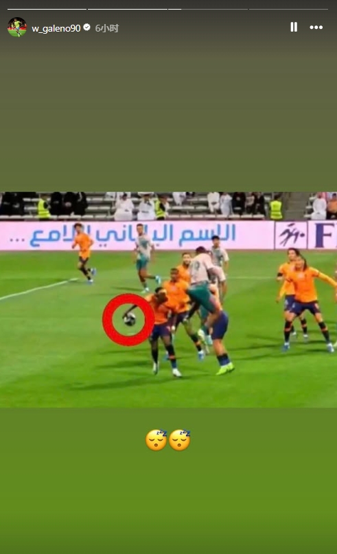 零点吧足球04月09日讯 沙特联赛第29轮比赛,吉达国民客场1-1战平费哈。赛后吉达国民前锋加莱诺更新社媒表达对裁判判罚不满。