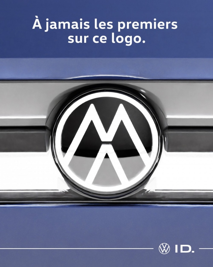 à jamais les premiers本是马赛俱乐部自己的经典口号,意思是“永远的第一”,常用来表达球队的荣耀与历史地位。大众在这里玩了一个文字游戏,加上sur ce logo(在这个队徽上),意在讽刺马赛的新队徽设计与大众汽车标志性的、极简的VW圆形Logo非常相似。