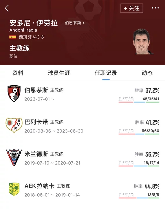 多家英媒:伯恩茅斯主帅伊劳拉赛季末不再续约,将离开球队