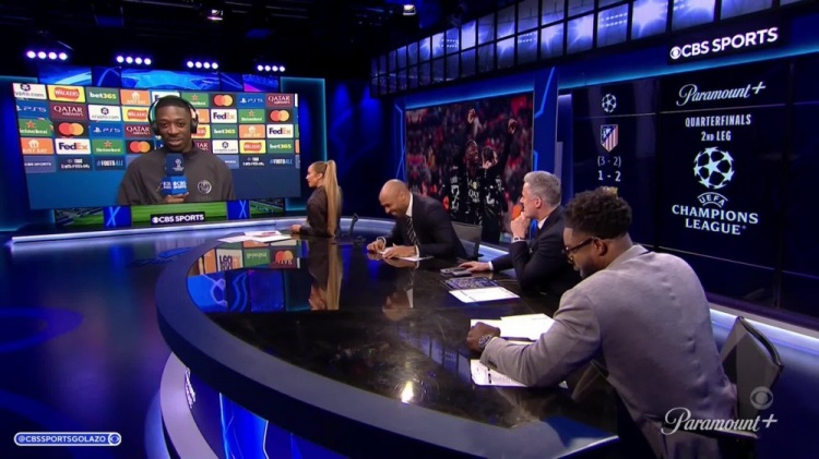 此役登贝莱打进2球,当选全场最佳球员,赛后他接受CBS采访时发生了有趣的一幕。登贝莱先是用英语说了几句,但很快就“败下阵来”,引得演播室内的评论嘉宾一阵欢笑。