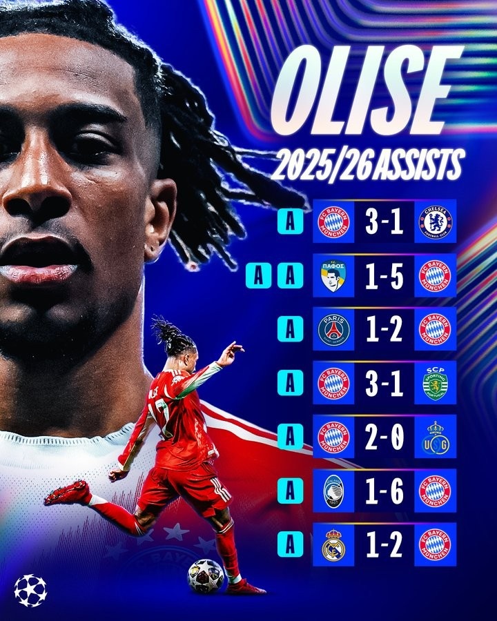 而数据统计显示,奥利塞本赛季为拜仁共计出战10场欧冠共计送出8次助攻,有7场都能送出助攻,也包括了双方首回合的伯纳乌之战。