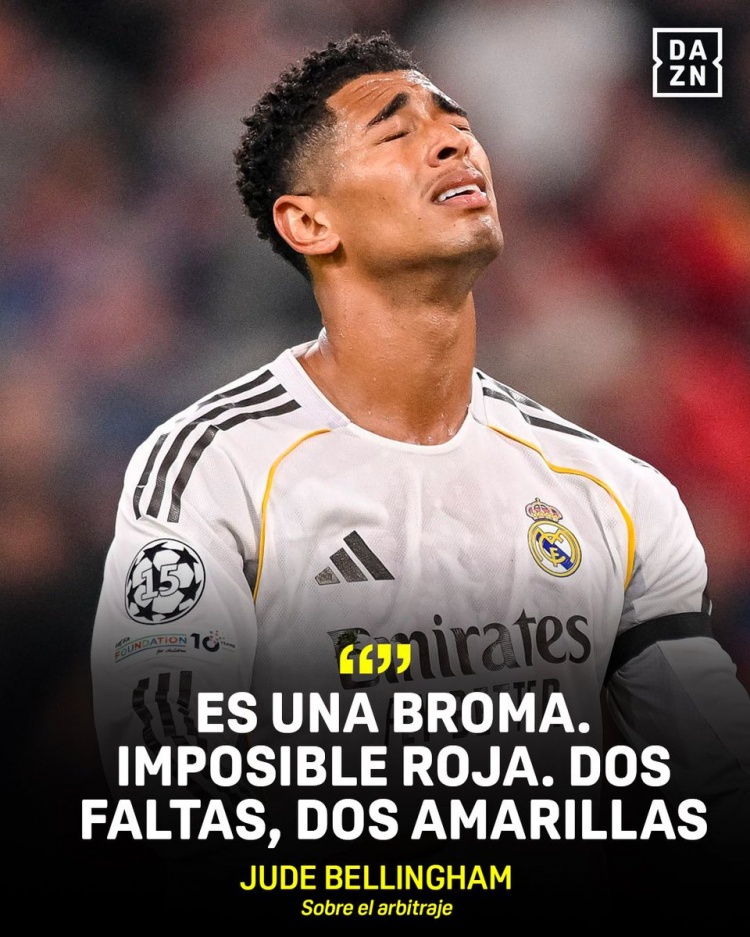 对此贝林厄姆在赛后采访时表示不满,他说道:“简直是个笑话,红牌根本不可能,两次犯规,两张黄牌!”