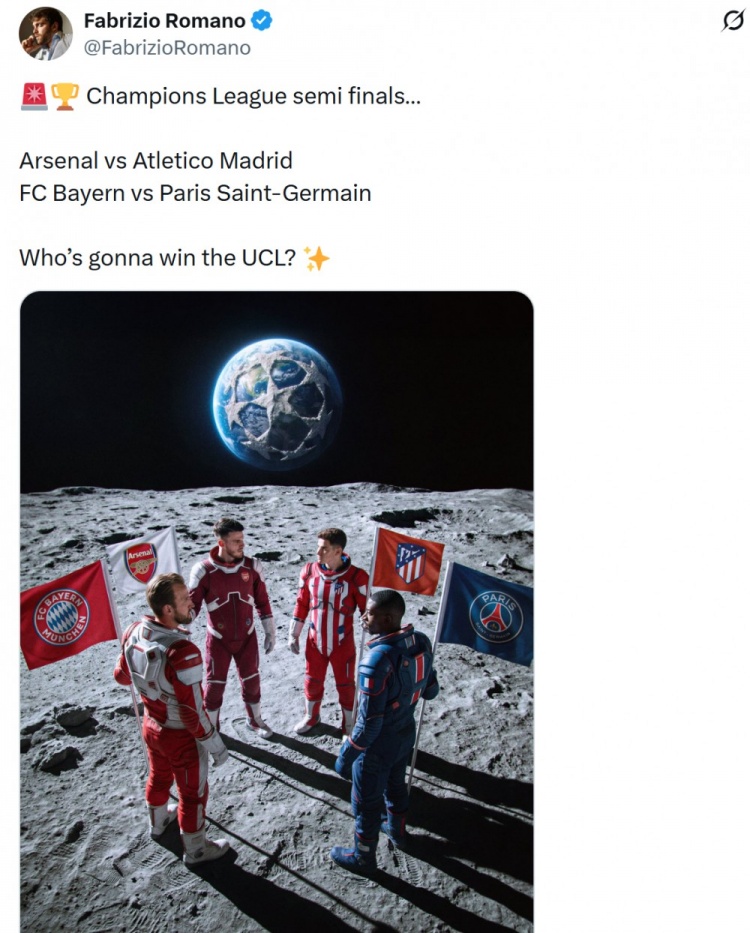 零点吧足球4月16日讯 欧冠1/4决赛战罢,马竞、拜仁、阿森纳、巴黎晋级四强。