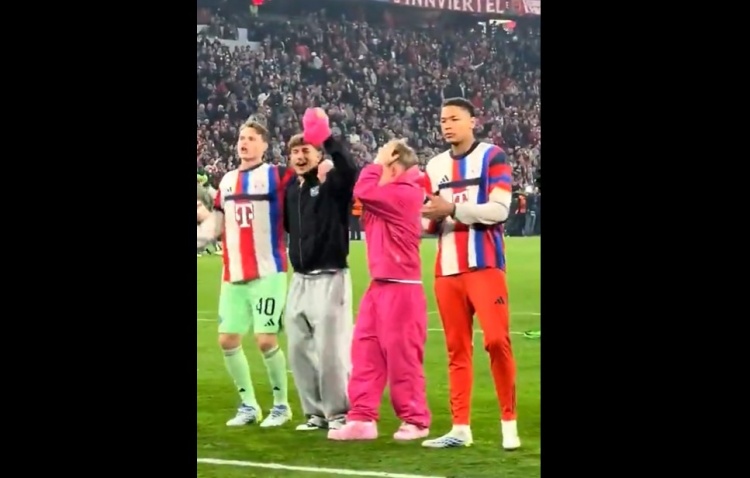 卡尔因伤缺席此役,赛后他与拜仁队友一起庆祝晋级,这位小将穿着一身粉色衣服,在球员之中格外显眼,他的帽子还被比朔夫抢走。