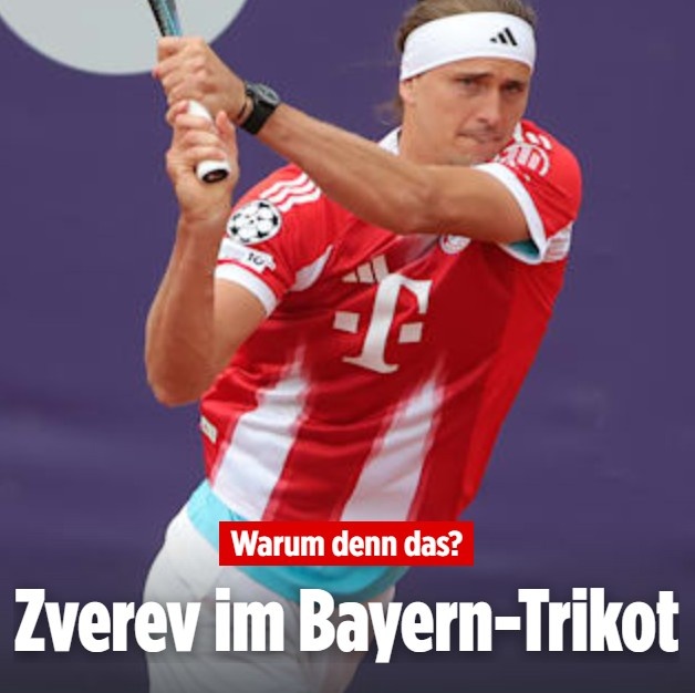 零点吧足球4月17日讯 世界排名第三的ATP网球选手、拜仁球迷亚历山大·兹维列夫在今日出战慕尼黑公开赛时,身穿了一件奥利塞的拜仁球衣。