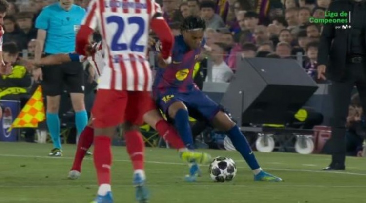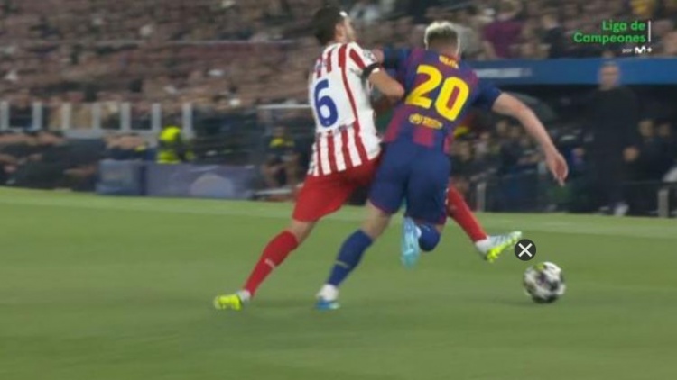 第39分钟,已身背一张黄牌的科克从背后铲倒亚马尔,击中小腿,裁判未出示第二张黄牌↓