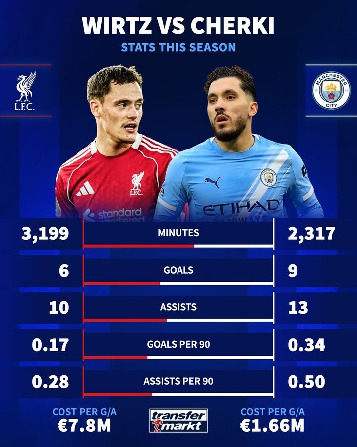 零点吧足球4月17日讯 《转会市场》对比了本赛季维尔茨和谢尔基这两位英超新援的关键数据: