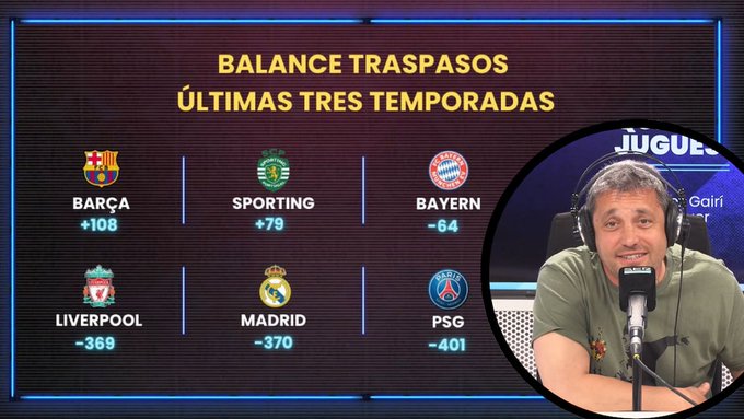 记者继续说道:“在其他进入欧冠四分之一决赛的球队中,只有葡萄牙体育的转会净支出为正。皇马也花了不少钱,但投资效果不佳。皇马的转会净支出为3.7亿欧,在过去三个赛季中,皇马比巴萨多花了5亿欧,组建了一支未能赢得冠军的球队。”