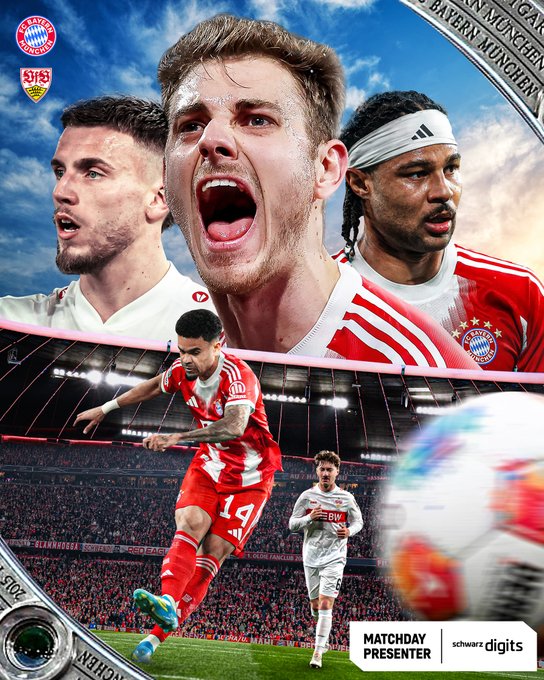 拜仁官方晒出海报为本场比赛预热,格纳布里、斯坦尼西奇和路易斯·迪亚斯出现在海报中,拜仁官方还配文:今天,球场周围弥漫着胜利的喜悦, 向斯图加特发起最后的冲击。??