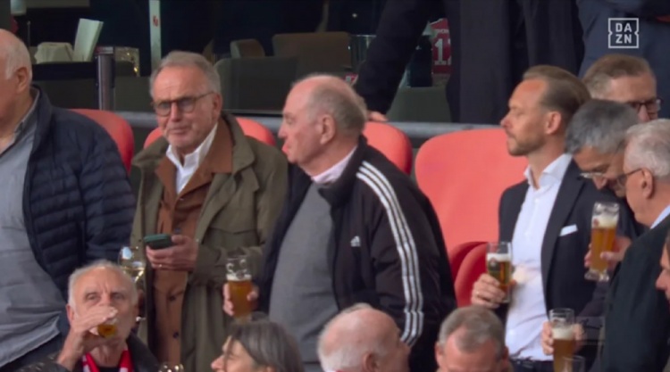 图片报:赫内斯等拜仁高层在看台小酌,庆祝球队卫冕德甲冠军