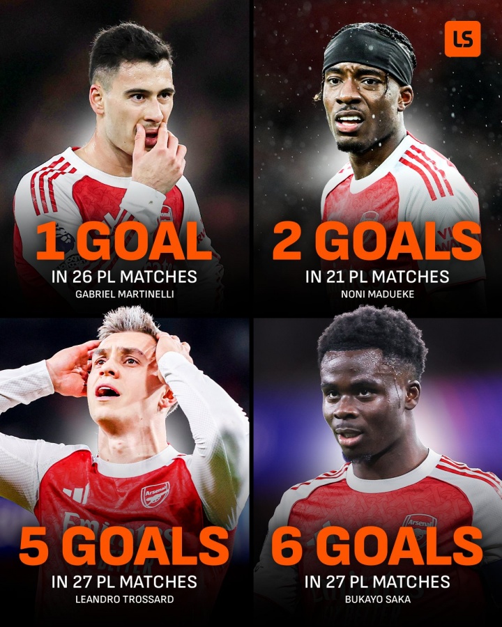 总身价2.35亿!阿森纳四大边锋英超共进14球:萨卡6球马丁内利1球