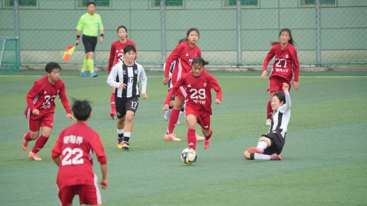 开场第11分钟,来自梅州体校的前锋杨嘉愉率先破门;第40分钟,对手边路传中,利用我方禁区防守空当攻入扳平一球;第52分钟,来自广西足协的边前卫杨慧乔接队友传中球后轻松破门,帮助队伍最终以2:1力克对手。纵观整场比赛,全体队员充分发扬拼搏精神,杨慧乔拼至双腿抽筋,展现顽强斗志。