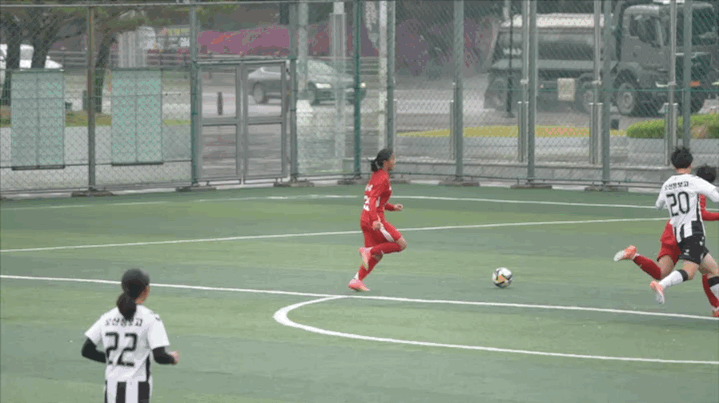 4月20日下午,集训队与韩国京畿道乌山信息高中女队展开交流赛。乌山信息高中是京畿道地区的女足传统学校,曾获韩国高中女足联赛冠军,在2026年春季大赛中获得全国第8名,主场作战实力强劲。比赛前突降大雨,气温骤降,乌山高中队以17-18岁球员为核心,平均年龄较我方大2岁。但雏凤小将们不惧强敌、敢抢敢拼,认真贯彻教练意图。
