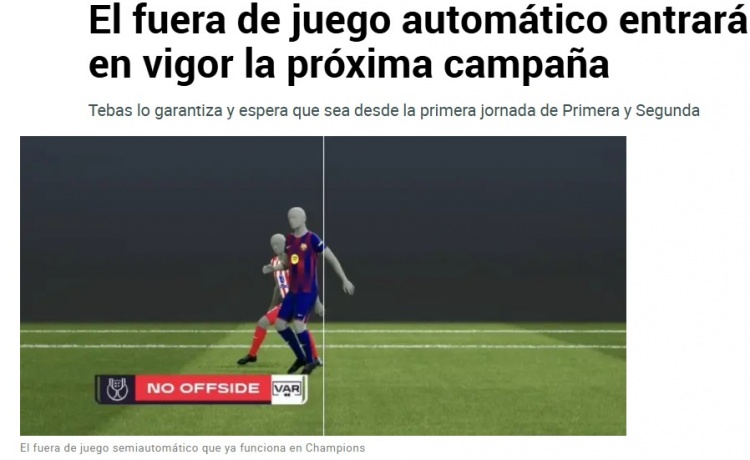 马卡:下个赛季西甲和西乙将引入全自动越位判罚系统