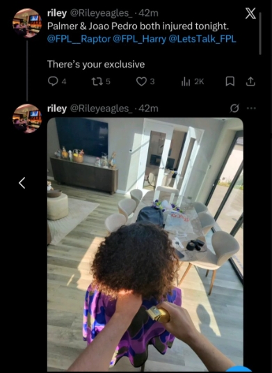 零点吧足球04月22日讯 切尔西客战布莱顿,帕尔默和若昂·佩德罗伤缺,这一消息遭库库雷利亚理发师提前泄露。
