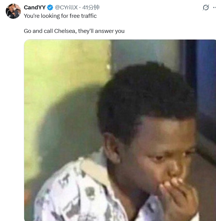 CYrillX:想白嫖流量是吧,去找切尔西,他们会回应的。