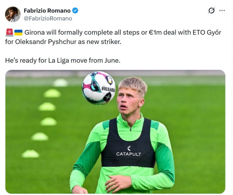 罗马诺透露,赫罗纳将正式完成所有步骤,以100万欧的价格从匈牙利吉奥里俱乐部签下乌克兰前锋皮什丘尔,球员将在今夏加盟。