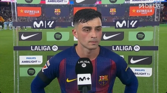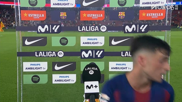 零点吧足球04月23日讯 西甲第33轮,巴萨1-0战胜塞尔塔。赛后,佩德里接受了转播方Movistar的采访。过程中出现一个小插曲,佩德里一度跑走以参加球队为德容举行的纪念仪式。