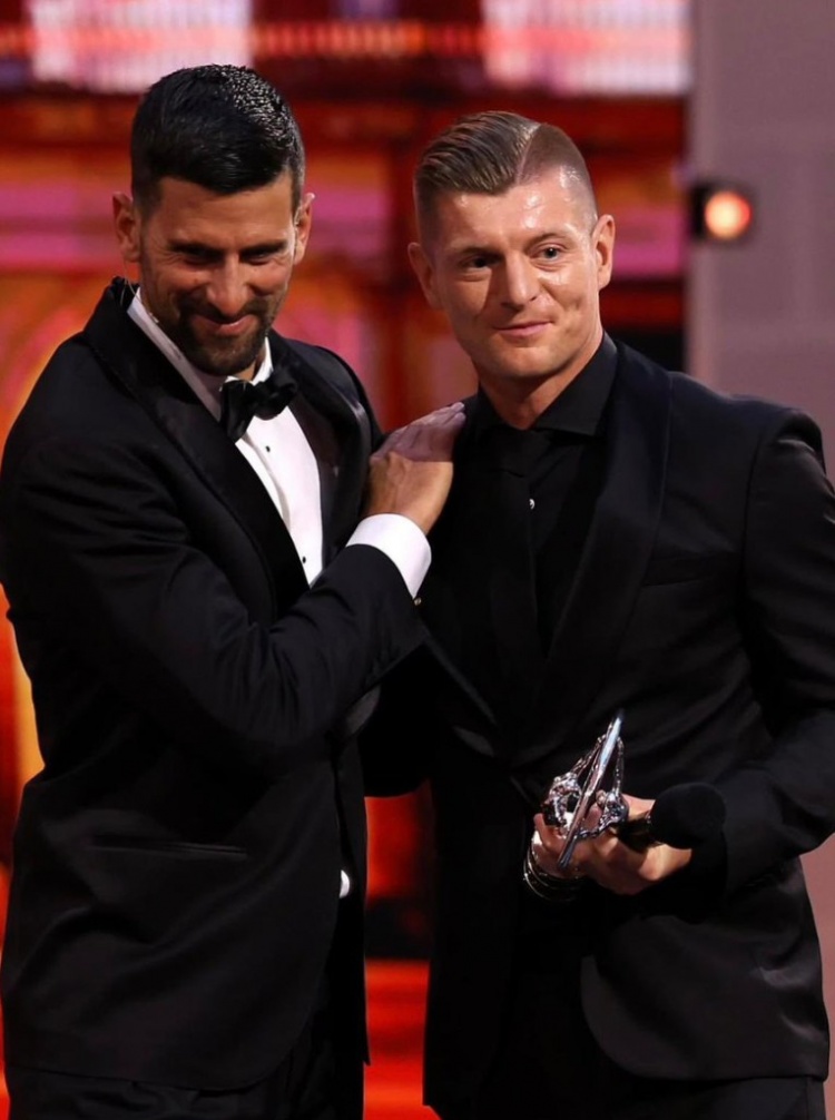 传奇同框!克罗斯晒照:从德约科维奇手中接过劳伦斯体育启发奖