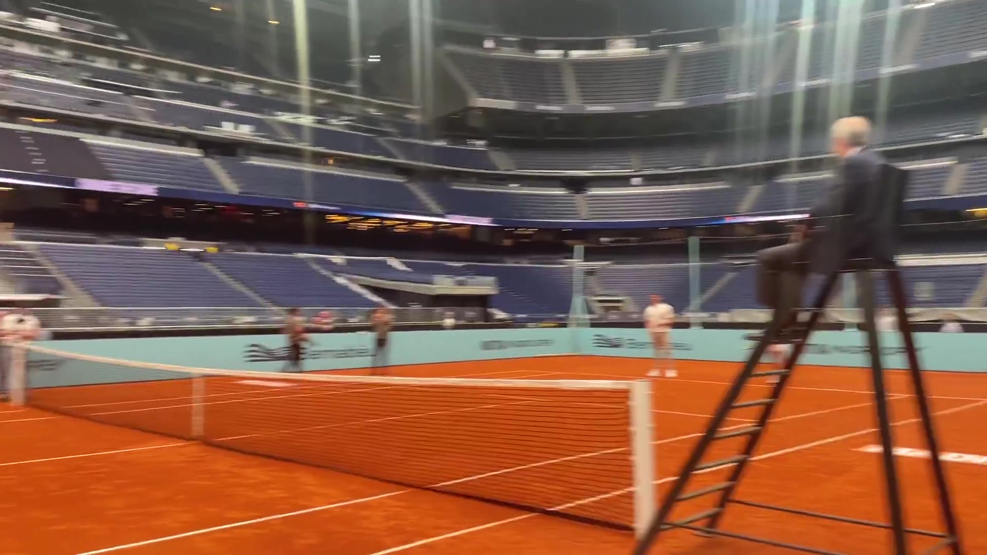 零点吧足球04月23日讯 马德里大师赛进行期间,一场别开生面的网球友谊赛在伯纳乌展开,对阵双方是辛纳+贝林厄姆vs库尔图瓦+纳达尔,担任主裁判的是皇马主席弗洛伦蒂诺。