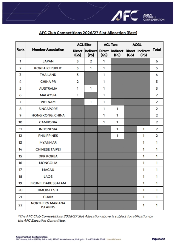 零点吧足球04月24日讯 亚足联官方消息,26-27亚冠精英联赛正式扩军至32队,中超球队有2个直通名额。