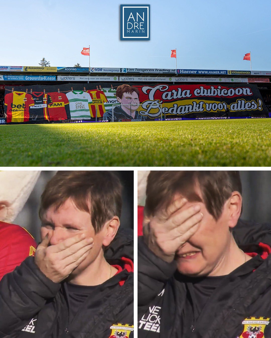 球迷也晒出了巨型TIFO向这位为球队工作了27年的员工致敬,TIFO上写着“卡拉,俱乐部传奇,感谢你所做的一切”,看到这一幕的卡拉感动落泪。
