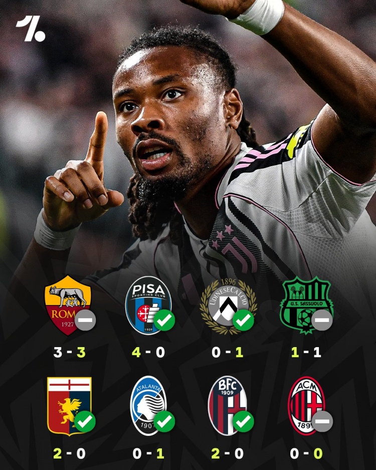 数据统计表明,尤文图斯目前已经连续8场比赛不败,期间他们战平了罗马、萨索洛和AC米兰,击败了比萨、乌迪内斯、热那亚、亚特兰大和博洛尼亚。