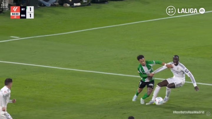 零点吧足球04月29日讯 西班牙足协发布了裁判技术委员会(CTA)最新一期的判罚评议视频,其中提到了皇马1-1遭贝蒂斯绝平的比赛中,贝蒂斯绝平进球前安东尼疑似对门迪犯规在先的判罚案例。
