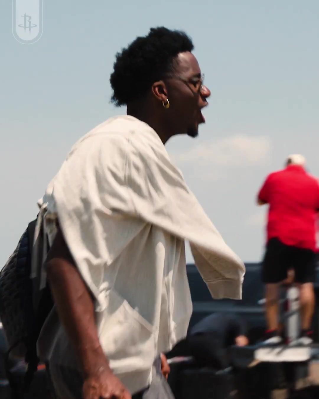 火箭众将登机:杜兰特小帽继续戴 伊森&小贾面带笑意 申京小红帽