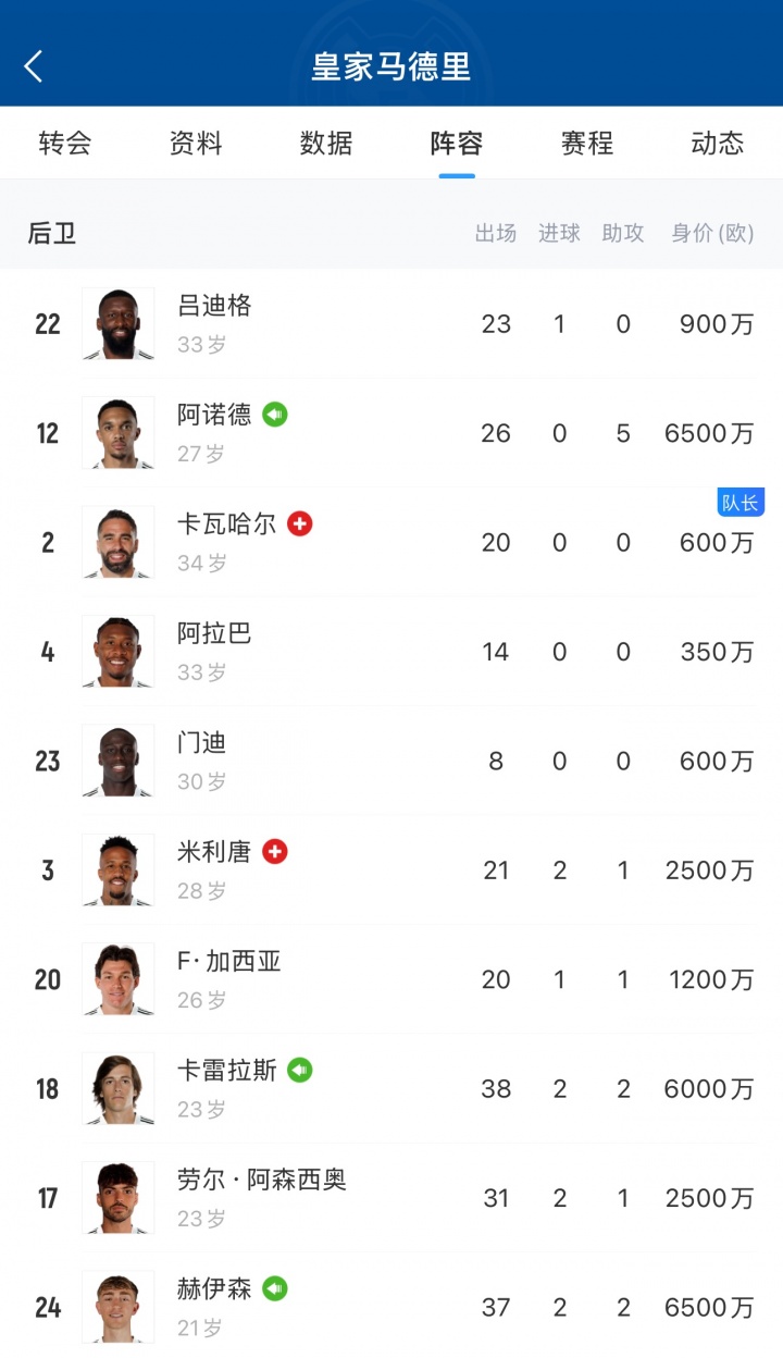 “他们尤其关注后防线上几名球员的情况,这条防线是伤病和球员年龄问题最严重的区域,他们肯定会引援,对吧?他们今夏会签人,至少会签下三名后卫。皇马至少会签下三名后卫,之后他们会着重补强其他位置,但眼下最紧迫的任务是提升球队整体实力,而提升球队实力就意味着加强后防线,这个位置伤病最多、球员年龄也最大,对吧?伤病不断,球员年龄渐长,还有一些球员的合同即将到期。皇马很清楚,后防线亟需改进。”