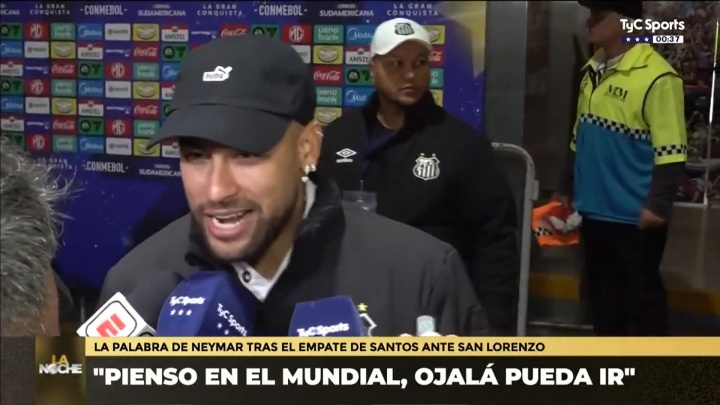 零点吧足球04月29日讯 南美洲杯小组赛D组,桑托斯做客阿根廷1-1战平圣洛伦索,内马尔首发出战打满全场,赛后他接受了TyC采访,谈及参加世界杯的目标。