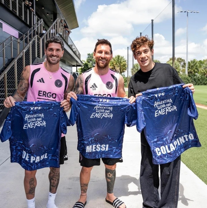 YPF公司在社交媒体上发布了一张三人的合影,并写道:“世界上最好的能量,阿根廷的能量。感谢我们的大使梅西、德保罗和科拉平托。”